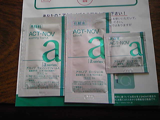 ニキビ肌用の化粧品です。 洗顔料は、洗い上がりがとてもさっぱりしています。 化粧水も、さっぱりしています。サンプル量は多いです。 美容液は、しっとりします。サンプル量は多いです。 どれもみんなべたつかず、肌が重くなりません。 ニキビがある人には、オススメです。