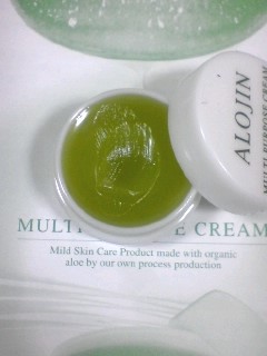 アロジンのマルチパーパスクリームのサンプルが届きました! まず蓋を開けてみてクリームの色にびっくり! アロエがそのまんま入ってるような色です。 ハンドクリームとして使ってみましたが、 のびはいいんだけど、肌に浸透していくまでちょっと時間がかかるのかなという印象を受けました。 あと、ちょっと匂いが気になるかも。 でも、少し時間がたって、肌に浸透しきってからは すごく肌がツルツルしてて、しかもそれが持続していますよ。 (間違えて投稿してしまっていたので、再投稿させていただきます)