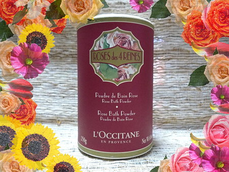 最近のバスタイムのお供です。 淡いピンク色のパウダーは水に溶けるとほぼ無色で、ほんのりとローズの香りが漂います。 お風呂あがりはお肌がしっとりして、全身からローズの香りがするのがたまらなくシアワセです。 限定品なので、今はもう買えないかも・・・。