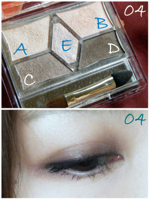 新しく仲間入りした04レディーベージュを愛用してます。 A→B→Dでナチュラルスタイル、A→C→Dで華やかスタイルを演出でき、Eのトッピングジュエルで繊細なキラキララメを加えることもできて、パレットひとつで様々なメイクバリエーションを楽しめます。 04の色味は、秋冬に似合いそうなシックでモーヴさも感じるブラウン。大人っぽくて色っぽいです! Aは、まぶた全体に乗せるとパッとくすみを飛ばして明るい肌色にしてくれるので、重宝します。 Bは、写真ではうまく色を出せなかったけど、落ち着いたナチュラルピンクですんご...