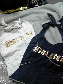 横浜VIVRE冬のバーゲンで一目惚れしてGetしました! ジーンズ地のホルダーネックです。 冬ってジージャンを着る機会は減ると思うのですが、ジーンズ地って以外と暖かいんですよねっ♪ 機能も、そして何よりデザインをあまりにも気に入りすぎて、白(もちろんこっちもジーンズ地)と青(オーソドックスなジーンズ)の二種をGetしてしまいました! カッコ良くも、フェミニンにも見えるホルダーネックはオススメですよっ☆
