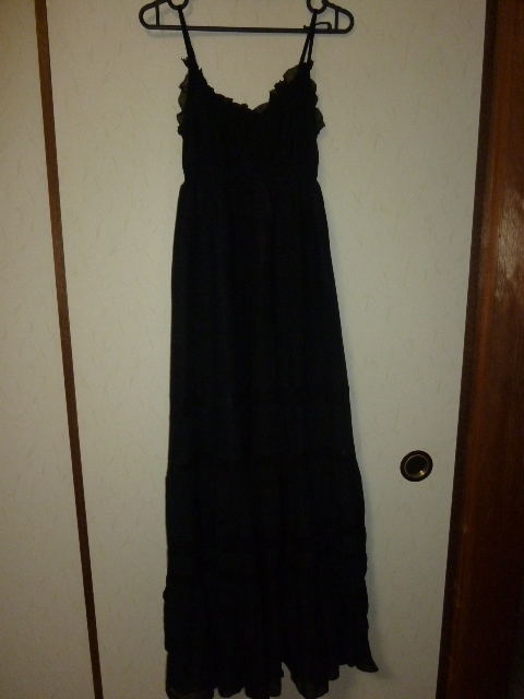マキシワンピ2着目ゲットです。 色は4種類あった中、シックな色が欲しかったので黒にしました。 ひざ下ぐらいからところどころ透けかんがあり、かわいいです。 胸元もフィットしていて一枚でも着れるし、中にTシャツ着てもかわいいし、今年の夏は大活躍です。