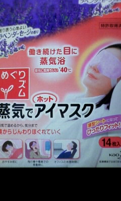 初めて使用してみました。 TVCMで気持ちよさそうだったので購入! 普段パソコンでの仕事で目の疲れを感じていました。 袋から出すと、じんわりと暖かくなってきます。 寝る前に使用してみました。ラベンダーの香りでリラックス というか、眠りに誘われるというか・・・ じんわりと目の奥から疲れが取れる感じです。 約40度の温熱と共に、蒸気でしっとりと目にフィット! そのまんま寝てしまった事がありました(笑) 寝る前に、1日の疲れを取り、簡単にリラクゼーションを 得られる事を、ちょっと楽しみにしています。