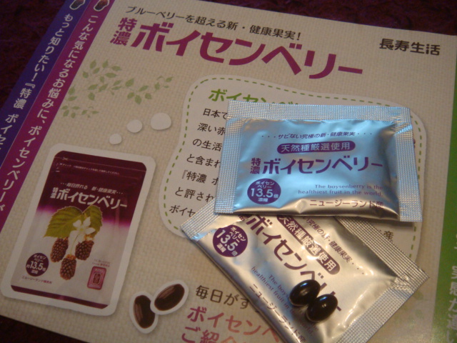 毎日、PCで仕事をすることが多いのですが、 目が最近疲れるな〜という感じが続いています。 去年はブルーベリーの木を買って、たくさんの実も取れて、 冷凍保存してヨーグルトに入れて食べたりもしています そのブルーベリーの2倍のアントシアニン、その他 エラグ酸・カフェ酸・ケルセチンといったポリフェノールや 葉酸・カルシウムもたっぷりとの事 それがボイセンベリーです 3日間のおためしをしてみました。 毎日いつでもいいので2粒、摂取後4時間位で 働きはじめるという事で、飲みやすいです。 私...