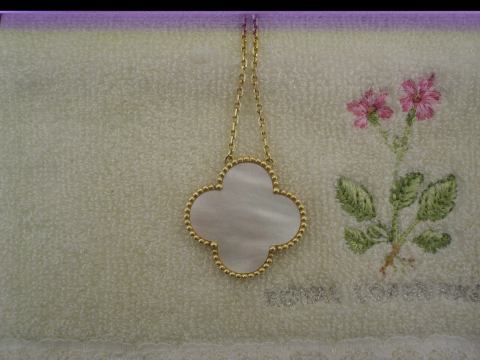 頂きものになります。 四葉のクローバーのように 可憐で、かわいいネックレスになります。 緑はヒスイかな。