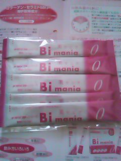 モニター応募当選しました ありがとうございます ゼリータイプ2個と個包装の顆粒タイプ7包が入っていました まずゼリーを2日続けていただきました やわらかく量もちょうどよく(120g)ピーチ味で美味しかったです こちらは1パック中になんと、コラーゲン・セラミドMKPが 1,000mgも入っています 水に溶かす手間もなく忙しい時に気軽に摂れるのと 携帯してどこでも摂れるのもとてもうれしいです 2日のお試しですが肌の調子がなんとなく良くなりました http://www.arist.co.jp/product/bimania.html