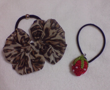 シュシュの次に好きなヘアアイテムは、 可愛いモチーフ付きのヘアゴムです。 ヘアゴムもたくさん持っていますが、 今はこの2つがお気に入り。 豹柄のふわふわリボン付きと、コロンとした苺付きのゴム。 どちらもかなーり使っています。