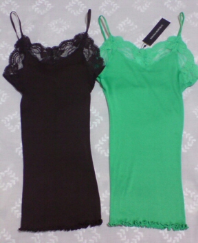 何枚あっても足りないくらい必需品なレースキャミ。 バナリパのコレは、発色が良くて形が綺麗で薄手で、 とっても便利品です。 今回のセールでは、ダークブラウンとエメラルドグリーンを 買い足しました。 1枚2,500円くらいになっていました。 とってもお得な戦利品でした。