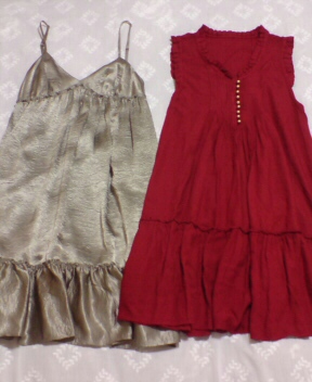 写真左。 シャンパンゴールドのキャミワンピです。 以前から気になっていて買わずじまいだったワンピが セールになっていました。 ラッキーでした。 本当に可愛くて超お気に入りです。 これはこの冬のバーゲンの1番の戦利品です。