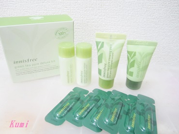 イニスフリー グリーンティ ピュア デラックスキットを送って いただきました♪ 美容液、化粧水、乳液、クリーム、パックのセットです。 イニスフリーのグリーンティシリーズには、緑茶の種から精製されたグリーンティ シードオイルをはじめとし、様々な部位から採れた成分が配合されており、お肌の奥から潤いのある健やかな肌へと 導いてくれます☆ グリーンティが主成分のコスメは初めて使用しましたが、想像以上に保湿効果が高くてお肌がしっとり〜☆ 直営緑茶畑でオーガニック栽培されたグリーンティは、肥沃な土壌...