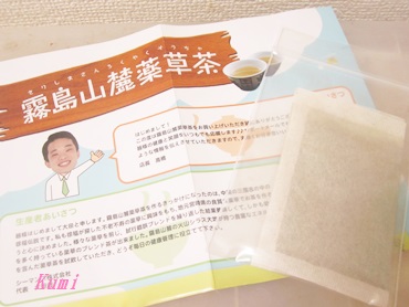 霧島山麓薬草茶 のサンプルを送って頂きました♪ 宮崎県に30万年前の火山噴出物から構成される霧島シラス台地に 100種類以上の化石層が含まれ、カルシウム、マグネシウム、鉄、亜鉛などが豊富で良質なミネラルが薬草を生み出しているそうです。 そしてこのお茶にはマグネシウムやカリウム、カルシウムが豊富な スギナ、栄養価が高い万能薬のヨモギ、ビワの葉、カキドオシといった薬草が使われているんです。 婦人科病全般、あせも、じんましん、吹き出物、生理不順、生理痛、打ち身、捻挫などなど・・・様々な効果がある薬...