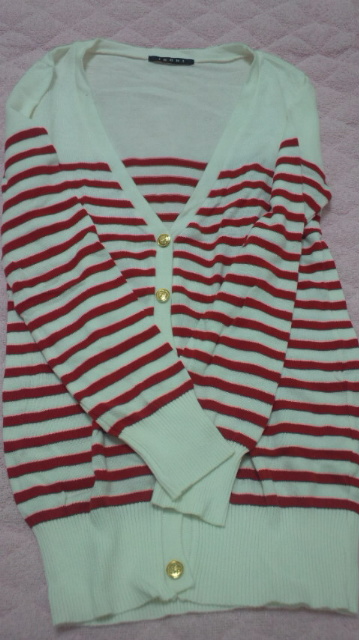 この秋オススメのファッションアイテム☆ カーディガンです。 マリン風なボーダーでちょっと夏っぽいかなぁ…と思ったのですが、このボーダーがアクセントになってくれます♪ どーしても秋冬物って地味な色になったり、同系色が多くなってしまいがち。しかし、このカーディガンはそんなマンネリ化を解消してくれます!薄手のジャケットと合わせるとチラっとボーダーのラインが見えてとっても可愛いんです☆スカートでもパンツでも合わせやすいので万能なカーディガンです♪