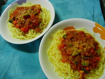★時短!秋野菜たくさん ミートソーススパゲッティー★ レシピものせてるよ^^ シンプル だけど、すっごくおいしい! 今の時期 すごくおいしい シメジとかぼちゃの 入った 秋野菜をたくさん味わえる ミートソースが たまりません!! おいしくて、簡単に出来ちゃうんですよ^^ 今回 使用した マ・マー 早ゆで2分スパゲティ 1.4mm 茹でる前は、風ぐるま形をした、断面形状なんですよ!! これが、早ゆでの秘密!! おいしい アルデンテ感のあるパスタを堪能出来ちゃいます! ★レシピ★ 2人分 時間: ...