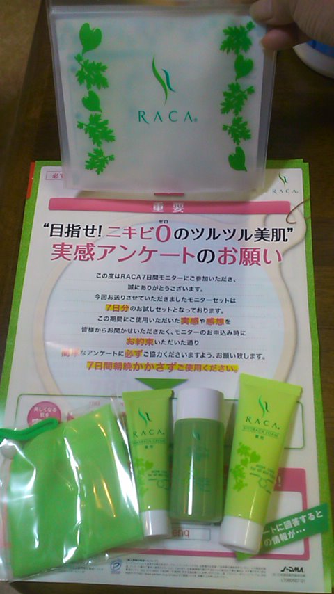 7日間無料モニターでした。 にきび用。 封入されていたのは下記です。 全て無香料でした。 ■洗顔ネット(泡立ちネット) ミニタイプで使いやすい ■洗顔フォーム ネットを使わなくても泡立ちが良いです。 荒い上がりはサッパリです。 ■化粧水 一般的なニキビ用と特に変わりないかな。 これもサッパリ系です。 ■クリーム 若干べつときます。 量の調節が必要かと思います。 総合評価としては特に特化した何かがあるわけではないかな〜という感じでした。使い続ければ違いがあるのかもしれません。