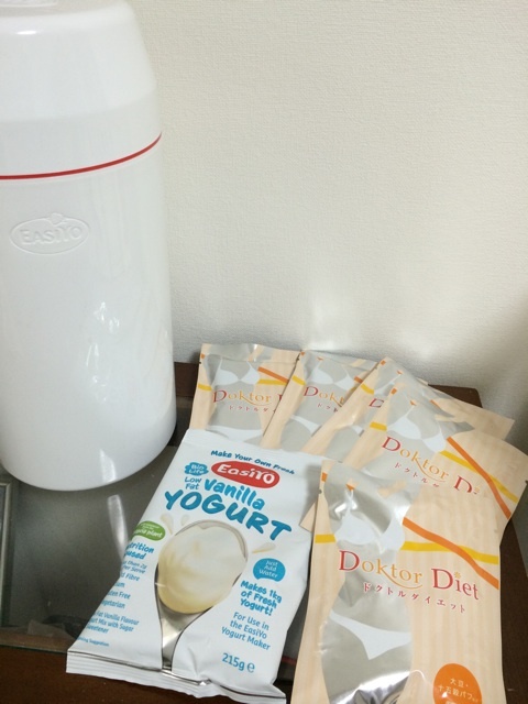 手作りのヨーグルトが作れるキット! しかも置き換えダイエット用なんですよ〜。 これが、完成したヨーグルト。 粉を水と混ぜて、キットに熱湯を入れて保温して発酵させます。 咀嚼感を出すために、パフをトッピング! 玄米などで作られた低カロリー、低Giのパフです。 ダイエット用とは思えない! 甘くておいしくて満足できる味です。 朝と夜、食事と置き換えて2日間がんばってみたら、なんと1キロ痩せました! お通じもスルスルと、絶好調になって肌もいい感じです! このドクトルダイエットは、先日参加したキレ...