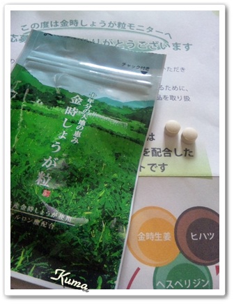 生姜っていうだけで、温め効果があるのに 「金時生姜」は、その4倍の温め成分が含まれてるんだとか 匂いを確かめようと袋に鼻を近づけたら ・・・メッチャむせました かなり生姜!です ただサプリメントなので刺激が強いとかっていう 心配はありませんでしたね 飲んでしばらくすると、ほのかに暖かくなったるような 感じがしました 冷え症な方には夜飲むと寒くて眠れない…なんて事から 解放されるかもしれませんね 1日2粒という手軽さも、いいですね