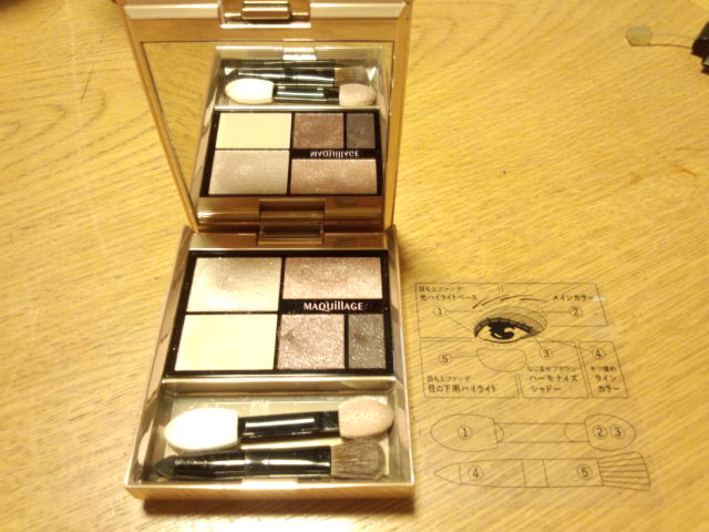 秋のお勧めメイクアイテムはマキアージュのアイシャドー☆ 発色がよくてパール感も程良いです♪ 秋らしくマッドなブラウンをチョイスしました! 左上のハイライトベースで今話題の涙袋メイクにも使用☆ もちろんアイホール全体にもなじませます♪ 左下の目の下用ファンデーションでクマ隠し☆ 仕上げにキワ埋めラインカラーで目力アップですo(^o^)o