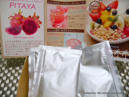 抗酸化効果のたかいミラクルフルーツ、ピタヤ(ドラゴンフルーツ)がパウチにはいってフレッシュにいつでも楽しめます。