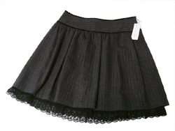 秋冬アイテム。 ストライプ柄スカート。 CanCamに掲載されて人気だとか。 形とレースがすごくツボだったのでお買い上げ。 ちょっと膝上なので、土曜出勤(カジュアル着OKな日)の時にしか履けないですが、ブーツと合わせると丈が丁度で可愛いです もうこの歳で履けるミニスカはこの丈が限界だろうな。・・・ふ。