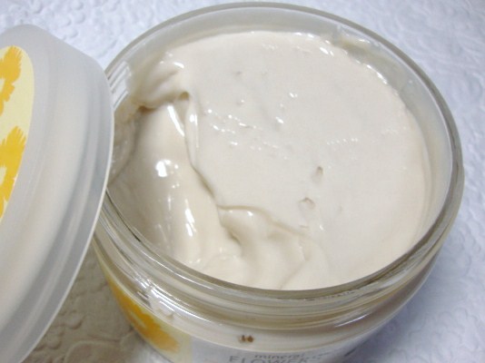 いい香りのボディバターカモミールは、肌にのばしてゆっくりよ〜くのばすと、肌が柔らかくなってきて、とてもしっとりします。 香りの持続性がとてもあり、時間が経ってもいい香りが続きます。 油っぽさはまったくなく、自然な感じののびでした。 私はたっぷりつけすぎたら、べたつきはなかったですが香りが強すぎました。 たくさん使う必要がないかな。少しでよくのびます。