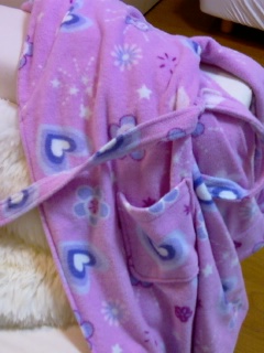 アメリカのデパートで格安で買ってきた物です。 子供用の物ですが、ぴったしです。 内側に紐がついていて、はだけないです。 柄もかわいいし、フリースであったかい。 おうちにかえってきたらこれをきて、家事をしたり、 くつろいだり。 かわいいくて機能的な物にかこまれているって、キレイの秘訣だとおもっています。お気に入りです。 ただ、右前なのが、ちょっと・・・。