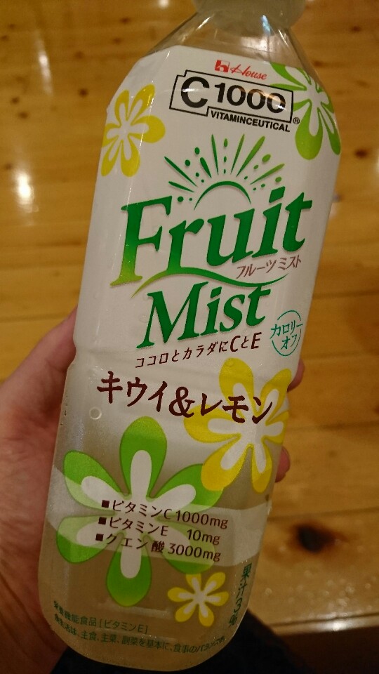 ハウス食品 Fruit Mist キウイ&レモンです。 栄養機能食品[ビタミンE] 果汁3% ビタミンC1000mg ビタミンE 10mg クエン酸 3000mg キウイとレモンのコラボです! レモンのさっぱり感だけでなく、キウイが入っているせいか若干ジューシーな感じが致します。 ビタミンクエン酸系ドリンク特有の喉に染みる感じは殆どなく、まろやかで甘めなのど越しです。 こちらは温泉でたっぷりの汗をかいた後に頂きましたが、ごくごくと一気に飲んでしまいました(笑) 身体が必要としている感じが良く分かります*^^* アウトバスに最...
