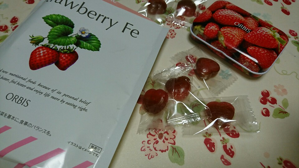 ORBISのストロベリーFeです。 期間限定の復刻版です。 おまけのいちごの缶の可愛らしさについ買ってしまいましたが、鉄分は疲労回復や朝の目覚めにとても効果的です。 しかも日頃の忙しい時の、ちょっとひと息つきたい時にこの甘酸っぱさがとても心地好いのです。 今まで鉄分はサプリメントでがっつり摂取しておりましたが、こんな可愛らしい摂り方ですと更に癒され疲労回復もちょっと違うような気が致します。 効果も程々、朝の目覚めがすっきりして来たように思います♪ 期間限定ですが、まだ間に合います。