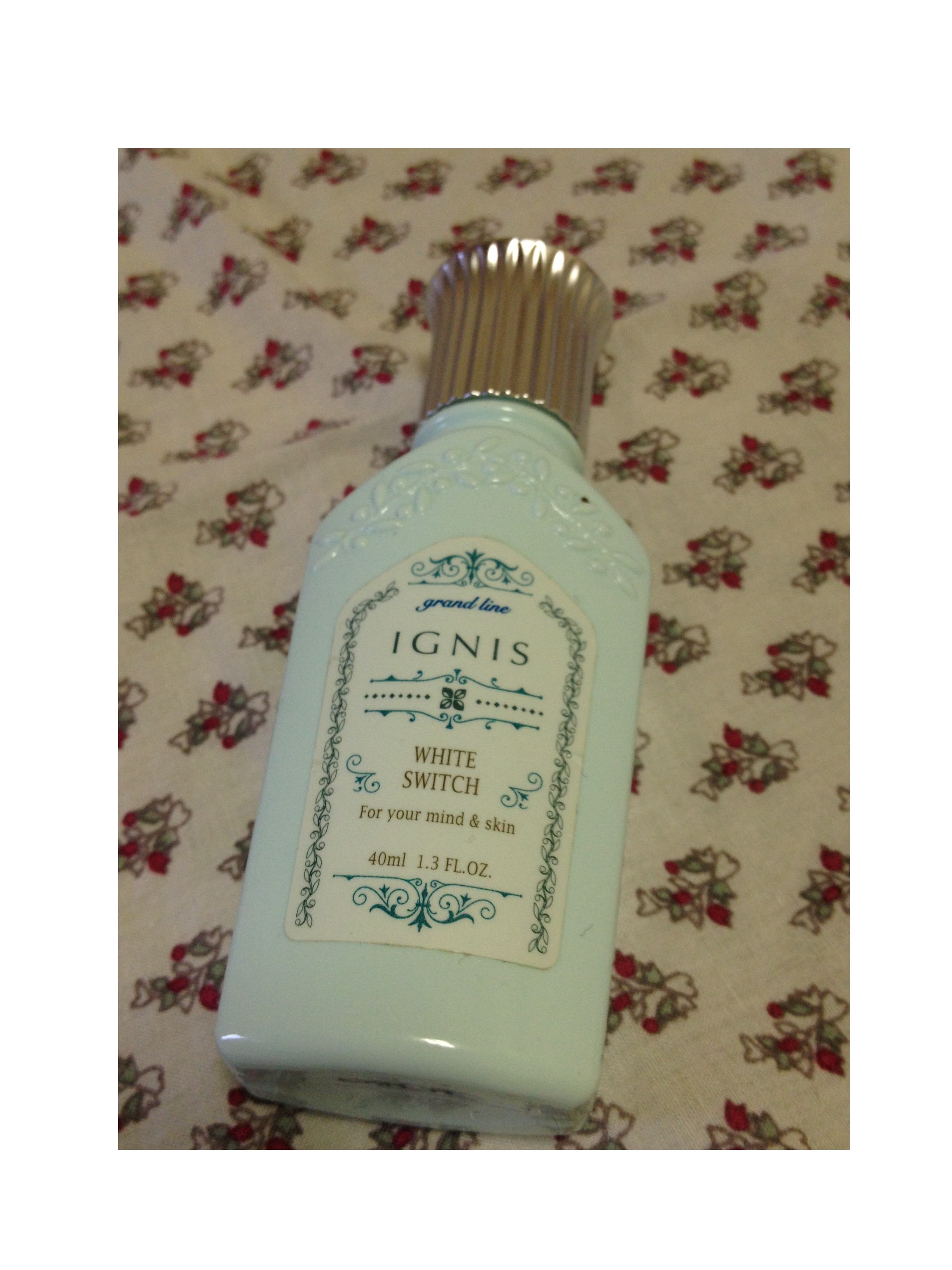 焼けた肌に☆真夏のレスキューアイテム「イグニス/ホワイトスイッチ」 長年愛用しているイグニスの美容液です。こちらの商品は美白効果が高く、また私のような年中(もちろん夏でも)乾燥肌、けれど美白はしっかりしたい!という方にオススメです。 使用感:さらさらの乳液状のテクスチャー。少ない量で良くのびるのでコスパは良いと思います。 効果:美白と保湿効果の両方ばっちりです。夏場はエアコンなどの影響で乾燥の影響も気になると思います。この商品は液体自体はさらさらですが、肌に乗せると手が肌に吸い付くような吸...