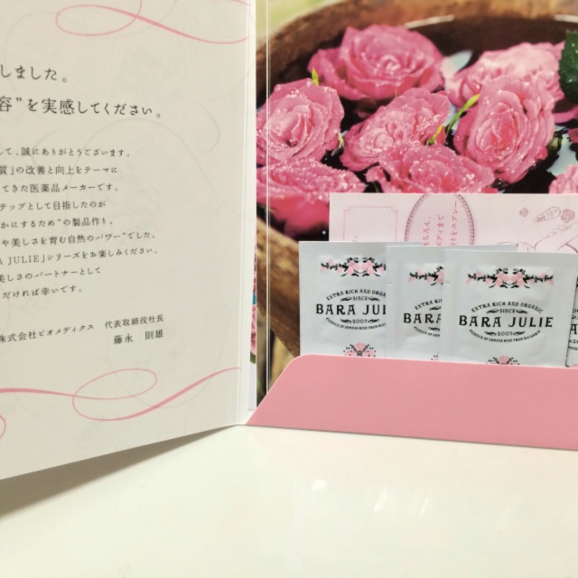 BARA JURIEのオーガニックローズウォーターの無料サンプル♡ 成分はダマスクバラ花水100%(*^^) 顔はもちろん、髪やボディに使用でき、全身から ほんのりとバラの香りがしてすごく癒されました♡