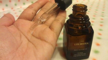 パッケージデザインは、水色、ボトルデザインは、茶色を基調にシンプルなデザインです。高級感があり、とても素敵で、いいですね。 スポイトタイプの美容液は、初めてつかったのですが、 使う分だけ、スポイトでだすことで、清潔感が保たれて、 美容液のいい状態が保たれて、とてもいいなと思いました。 スポイトから、透明で、濃厚な美容液が、出てきます。 塗布後 手のひら全体で 顔を包み込むようにして やさしく押さえながらじっくりと肌になじませたのですが、リラックスでき、心地よい時間をすごすことができました。 浸...