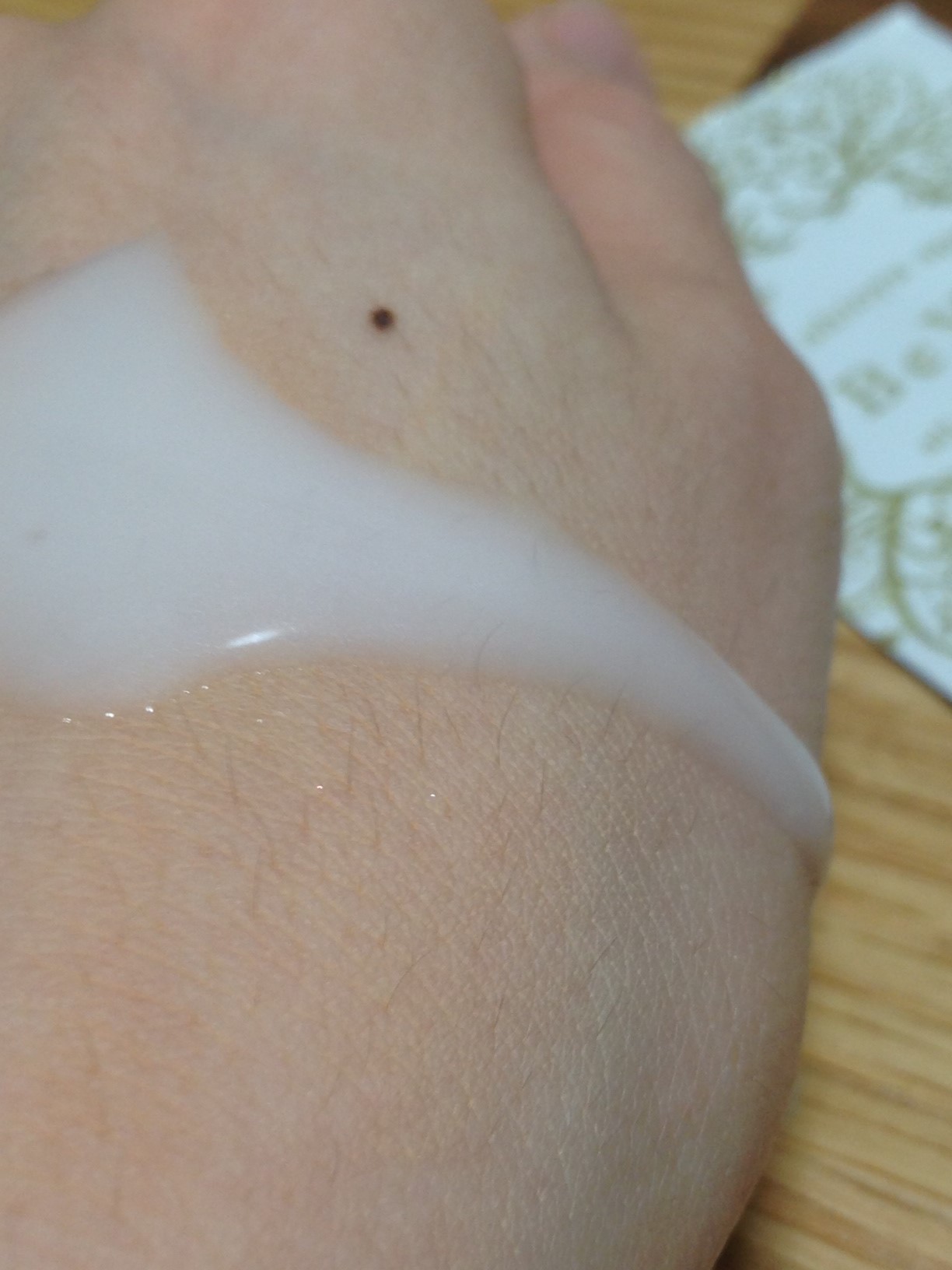 おろおろとか浸透しないとかオールインワンの欠点がない。 しかし、サンプル量ということもあって、 これだけでは物足りない感覚があります。 手の甲に垂らしたら、トローンって流れゆくような緩さです。 膜を張らないで、中に入って行きますよ♪ ベルガモットで付けていて癒されて、気持ちいですよ。 夜使うっていうより、朝コスメっていう印象です。 不快な点がないので、メイク前にでも使えそうです。