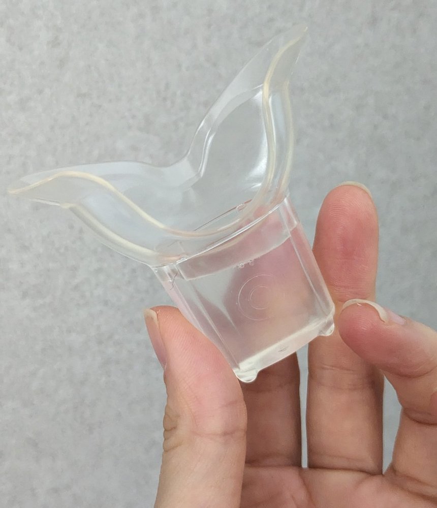 鼻にフィットする専用カップに洗浄液を入れ、鼻をひたして洗います。