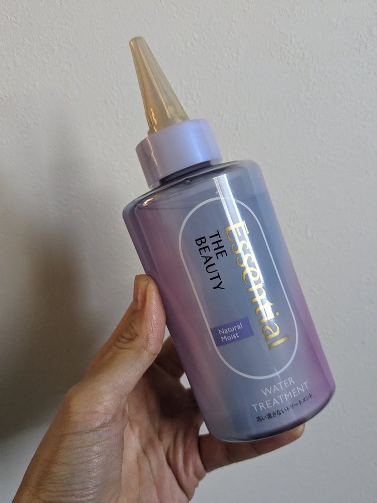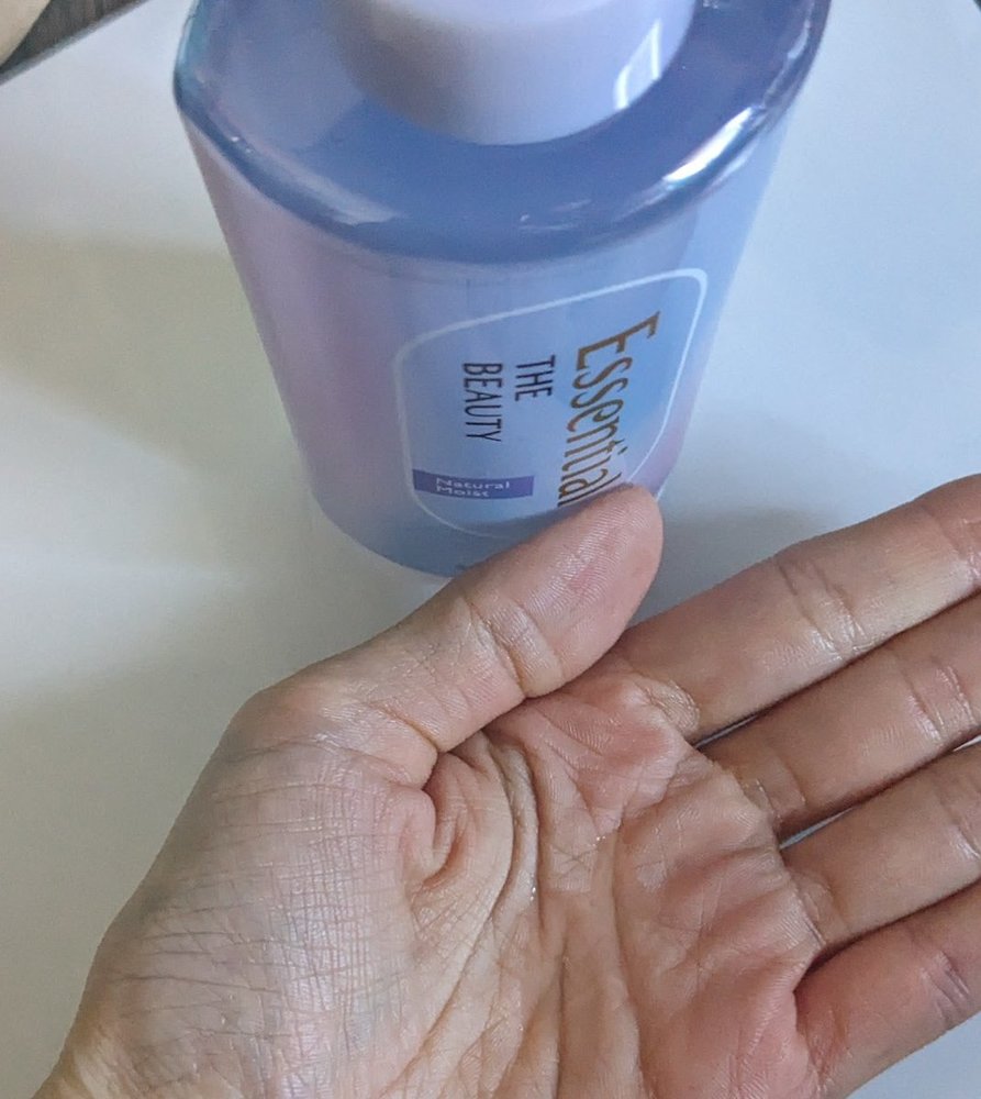 美容液のような、粘度の少なめテクスチャーです。とろみがないので、手に出しすぎるとちょっとこぼれちゃう。なので、少しずつ出して髪の毛になじませます。