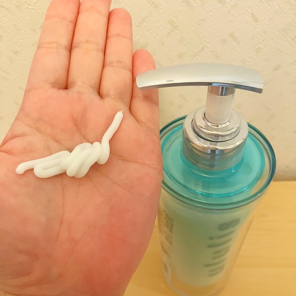 こちらはかなりコクのあるクリームタイプのトリートメントで取り出した時の形がそのまま残るくらいにコックリとしていて濃厚ですね。