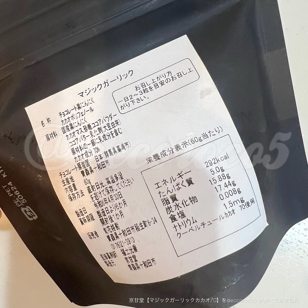 京甘堂【マジックガーリック カカオ70】についてのレビューです🎁 ˎˊ˗