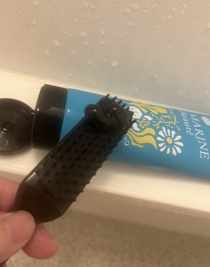 シャンプー後 水気をタオルで拭き取って付属のブラシに少量づつ塗布します