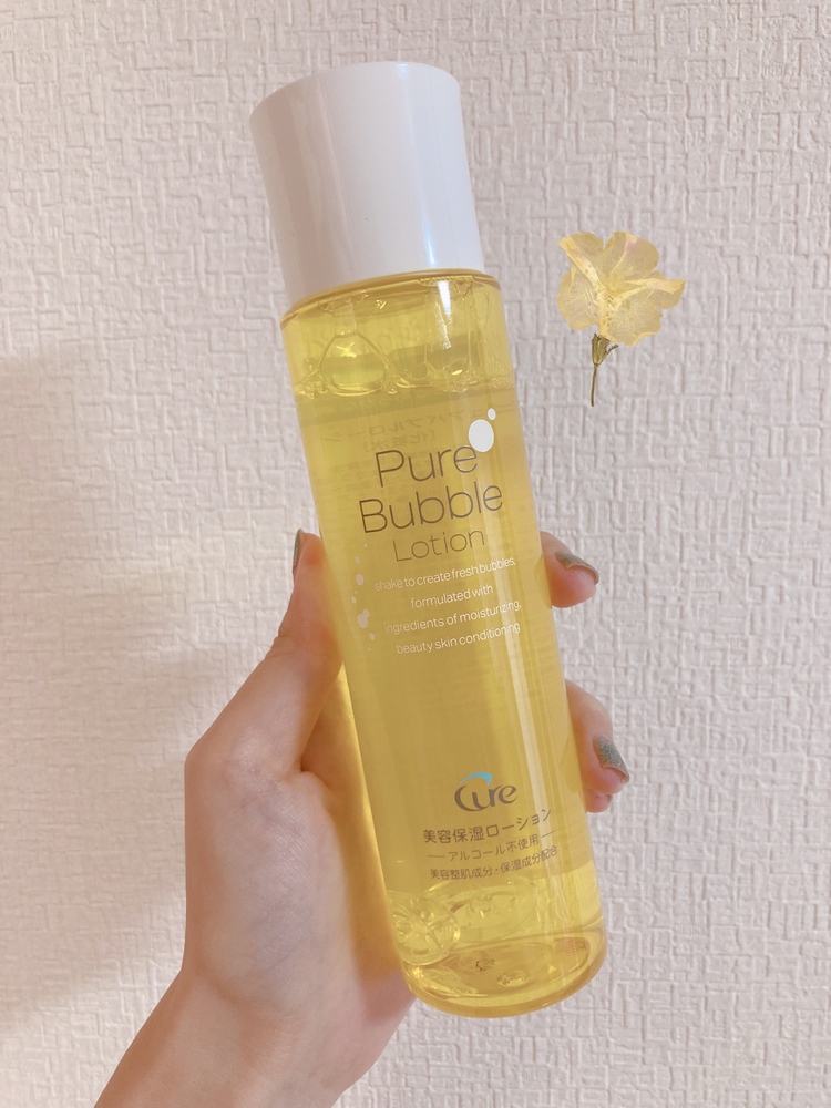 ピュアバブルローションをモニターキャンペーンでお試しさせて頂きました💛 振るとナノバブルが発生し、肌への浸透力を高めてくれるビタミン系化粧水✨ ビタミンカラーの黄色が綺麗な見た目ですが無着色無香料♪ サラッとしたテクスチャーなので軽い着け心地で使いやすい! メイク前の拭き取りで使います🌸