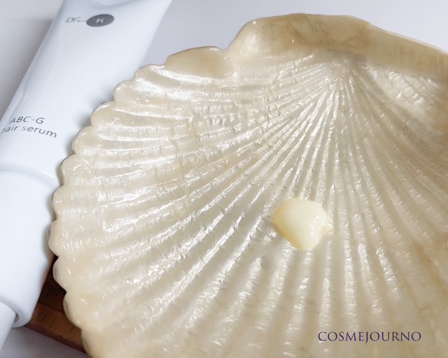 ほんのり黄色みを帯びた乳白色のコクのある乳液状の美容液です。