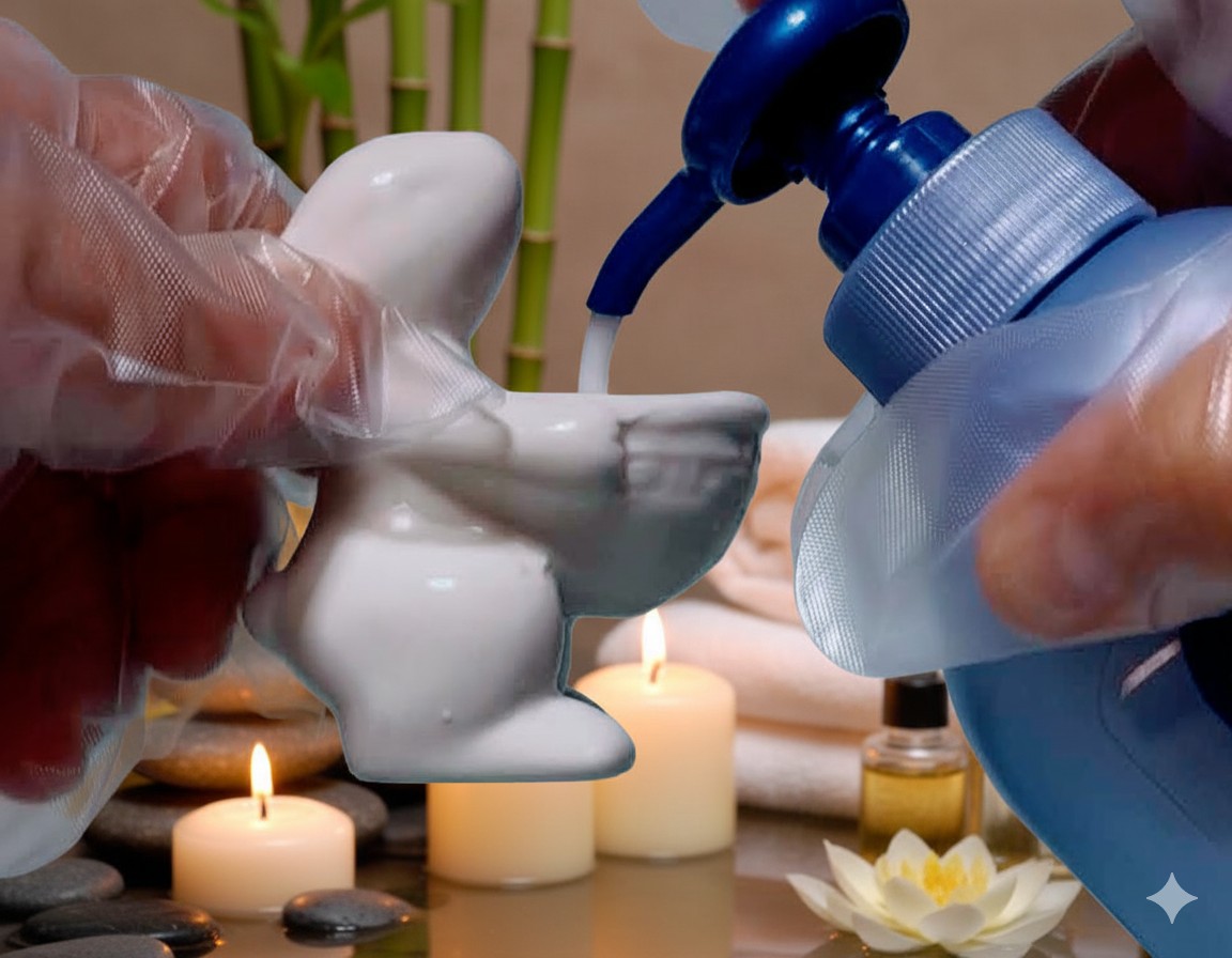 眠る前に、ハンドクリーム、ていねいにすりこみます。
