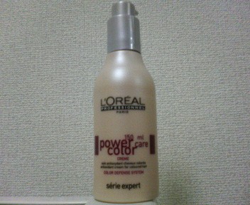 洗い流さないヘアトリートメントです カラーリングやパーマを繰り返したダメージへアに働いて、 ヘアカラーを美しく保つトリートメントです ポンプ式で乳液状で髪に馴染ませやすいです ドライするとツヤツヤサラサラになりますよ♪ 150g 2800円(定価)ですが、 毎日使用して2〜3ヶ月持つのでコスパも良いです 乳液状の為か、旅行とかに持ち運んでも中身が漏れて容器がベタベタに なることもありませんでした ヘアカラーの退色も防いでくれています☆