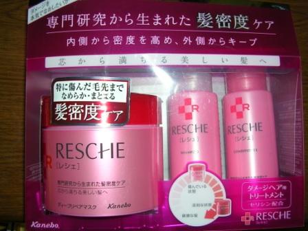 私が前からお気に入りなレシェ♪ あまりCMでも見かけませんが、 香り・使用感共に、私はおきにいり♪ これはパックで安売りしていたのを購入しました★地域によってはないと思いますが、 お試しシャンプー・リンス&トリートメントも付いて、600円台でした★ クリームは結構固めで、私は トリートメントをつけてキャップをして蒸してます★ お風呂でもいいし、朝、洗った場合はトリートメントつけた後に、ヘアキャップをして、その上にさらにタオルをして、掃除や家事をしながら蒸しています♪ オススメですよぉヽ(*^‐^)...