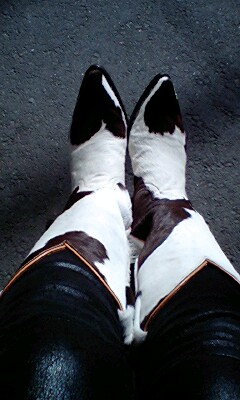 春に履こうと思って最近買ったブーツ… とても気に入ってます♪ おまけにハート柄… ハラコのブーツです。 ハラコって何の革か知ってる? 雌牛を殺した時に偶々お腹の中にいた子牛の革なの… だから、ハラコっていうそうです… かわいそうな… だから大事に使わなくっちゃね…