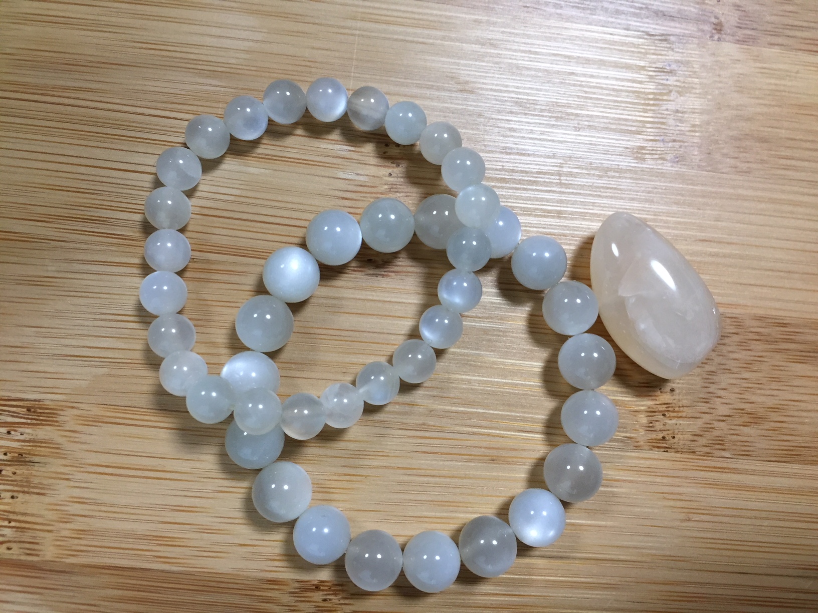 乳白色にまるで月の光のようなシラーの輝きが美しいパワーストーン。白っぽいもの以外にも、オレンジやグレーなどさまざまなカラーがあります。 昔から「恋人たちの石」などと呼ばれ、恋人同志で贈り合う風習もあったようです。恋愛成就のお守りとして効果が期待できるほか、出産や生理、更年期障害など、女性特有の症状にも効果があると言われています。