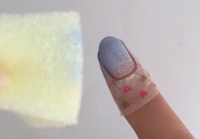 4.3のスポンジを爪にたたきつけます。 押し付けるのではなく、数回とんとんたたきつけます。そうすることで、色が馴染みます。