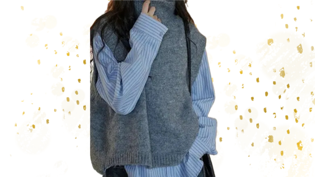 ブルーとグレーの色味がバランスよく合ってオシャレな着こなしになるので、グレーのニットベストやニットトップスとぜひ合わせてみましょう!