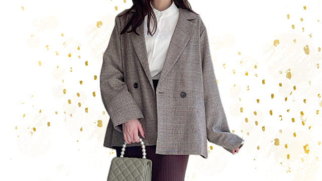 ボトムスはパンツでもスカートでも相性バッチリ。ジャケットを冬らしいチェック柄や千鳥格子柄のものにするのがおすすめです!ブーツとの相性も抜群ですよ。