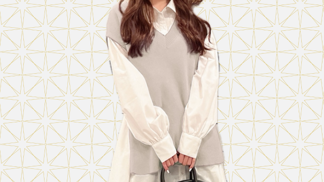 襟付きシャツや大きめリボンのボータイブラウスなどをニットの下にレイヤードしてみましょう!クルーネックのニットと相性抜群ですよ。