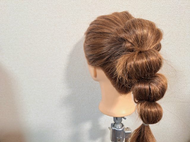 玉ねぎヘア苦手さんに!ゴムが見えないぽこぽこアレンジのやり方まず、手ぐしでいいので顔周りの髪を残して、オールバックに毛流れを整えておきましょう。