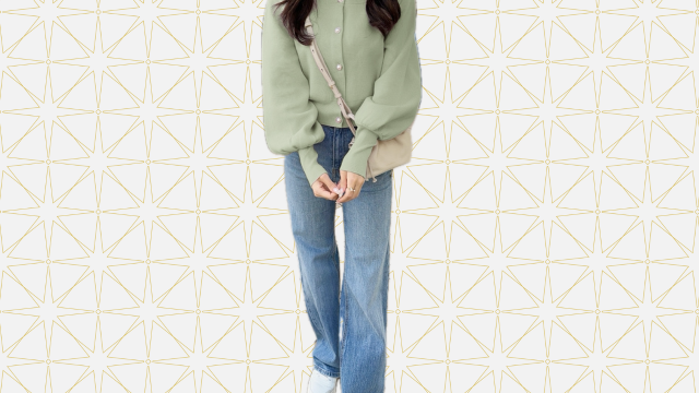 カジュアル派の方は写真のようにデニム合わせで、キレイめ派の方はプリーツスカートなどかわいらしいスカートに合わせるのはいかがでしょうか。