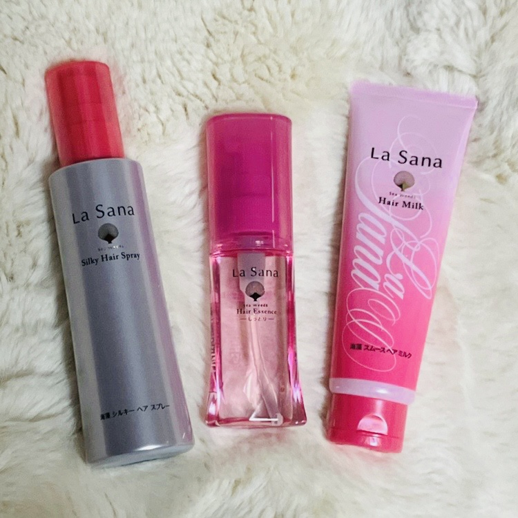 『ラサーナ 海藻 シルキー ヘア スプレー』 主に朝使用する、水分たっぷり含まれたスプレータイプの美容液です。フルーティな香りが漂いとても癒されます。